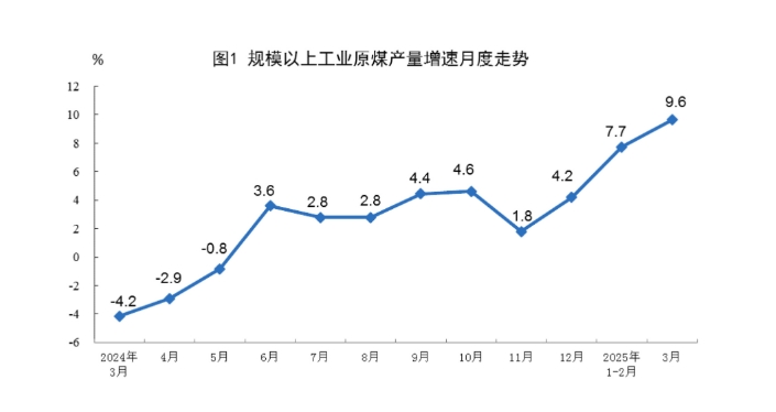 0 04-16 10:11国家统计局:3月份,规上工业原煤产量同比增长9.6%